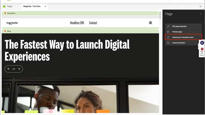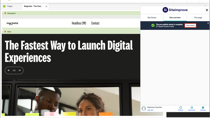 The idea behind the plugin is simple, yet effective. By leveraging the insights from Siteimprove’s Intelligence Platform directly in Magnolia, editors no longer have to publish a page and then have it checked separately, switching across different tools. This streamlines the workflow in an environment where brands increasingly have to consider multiple channels, devices and formats.