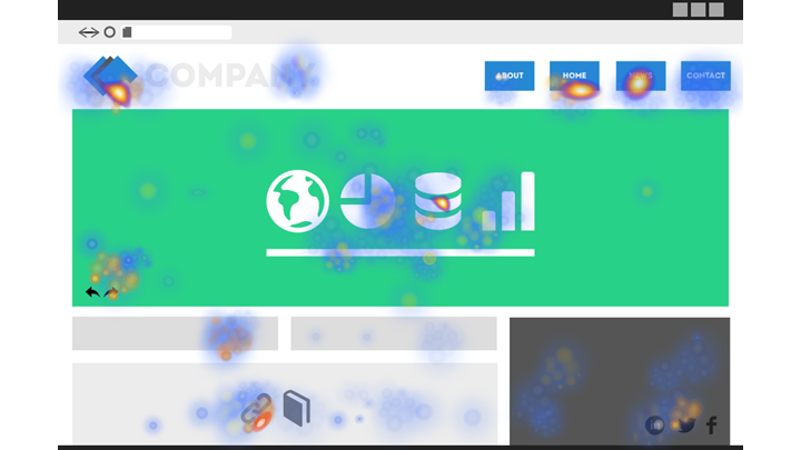 Click maps show the amount of clicks each page element gets. Again, elements with no clicks will be blue, while elements that get a lot of clicks will be red.